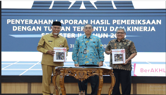 Untuk ketahui, penyerahan LHP Dengan Tujuan Tertentu dan Kinerja Semester II Tahun 2024 dihadiri oleh Gubernur Sumbar Mahyeldi Ansharullah, 10 kepada daerah (walikota/bupati-red) serta beberapa ketua dprd dari sejumlah kabupaten/kota.