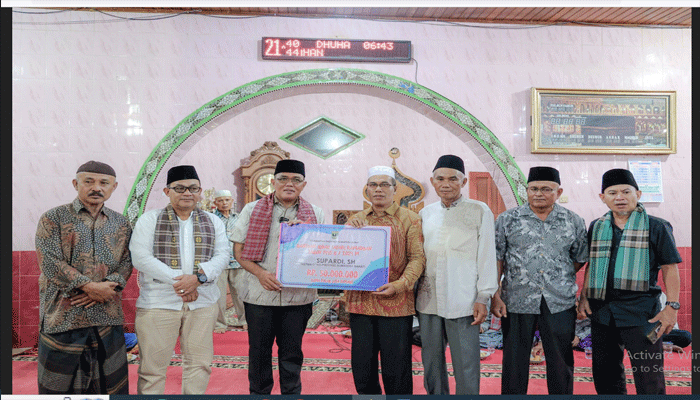 Padang TIKME.com – Ketua DPRD Sumatera Barat Supardi,SH pada saat memberikan arahan sebagai pimpinan rombongan tim III safari ramadhan provinsi Sumbar, di masjid Muttahidin Nagari Parambahan, Kecamatan Limposi Kota Payakumbuh, beberapa waktu lalu. Kita senang dan menyambut baik adanya kemauan masyarakat untuk melakukan renovasi pembangunan masjid Muttahidin Nagari Parambahan yang megah dari sebelumnya. Namun jangan sampai lupa memakmurkan masjid tentu lebih menjadi perhatian yang lebih besar lagi.