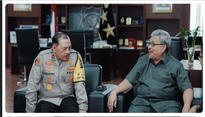 Padang TIME.com – Tingkatkan koordinasi antar lembaga di Provinsi Sumatera (Sumbar), pimpinan DPRD Sumbar kunjungi Kapolda Sumbar Irjen Pol Suharyono, Rabu (17/10). Pada kesempatan tersebut pimpinan DPRD Sumbar membahas pembentukan sistem keamanan berbasis masyarakat