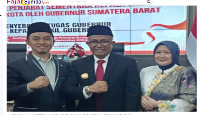 Metro Padang.com – Ketua sementara DPRD Kabupaten Pasaman, Nelfri Asfandi menghadiri pelantikan Pejabat Sementara (Pjs) bupati/wali kota di Provinsi Sumatera Barat, yang dilantik oleh Gubernur Sumatera Barat, Mahyeldi Ansharullah di auditorium Gubernuran, Selasa kemarin.