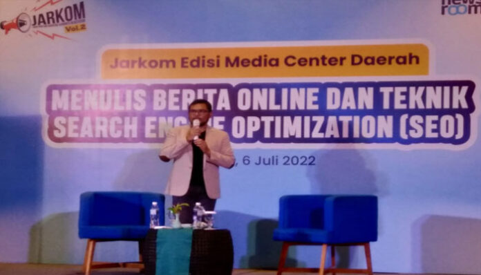 Pelatihan yang dikemas dalam bentuk Bimbingan Teknis Jurnalistik Media Center ini bertajuk Jarkom Edisi Media Center Daerah: Menulis Berita Online dan Teknik Search Engine Optimization (SEO).