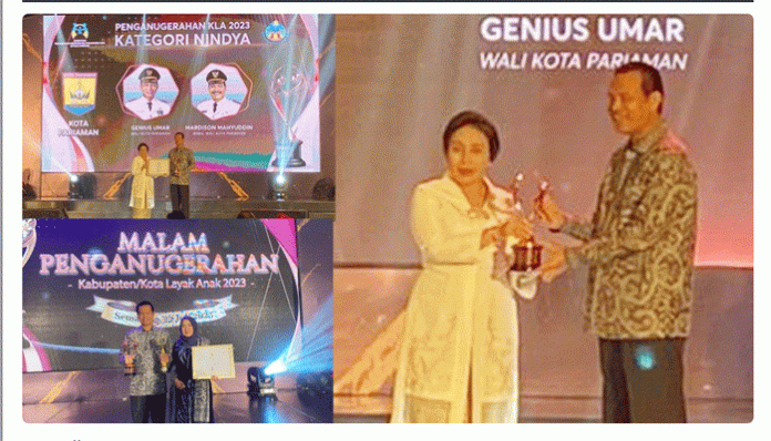 Komitmen ini yang kembali menghantarkan Kota Pariaman meraih penghargaan dari Kementerian Pemberdayaan Perempuan dan Perlindungan Anak (PPPA), berupa penghargaan Kota Layak Anak Peringkat Nindya, bertempat di Hotel Asmad Kota Semarang, Provinsi Jawa Tengah, Sabtu malam (22/07/2023).
