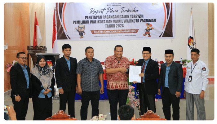 Ali Unan saat konferensi pers menjelaskan bahwa penetapan ini dilaksanakan berdasarkan Surat Keputusan KPU Kota Pariaman Nomor 1 Tahun 2025 tentang penetapan pasangan calon terpilih Walikota dan Wakil Walikota Pariaman pada pemilihan Tahun 2024.