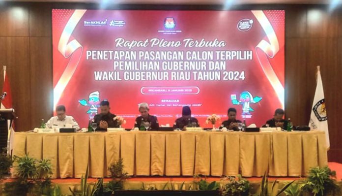 Rapat pleno dipimpin oleh Ketua KPU Riau, Rusidi Rusdan, didampingi jajaran komisioner KPU lainnya. Acara ini diawasi langsung oleh Badan Pengawas Pemilu (Bawaslu) Riau serta dihadiri unsur Forkopimda dan pihak terkait lainnya.