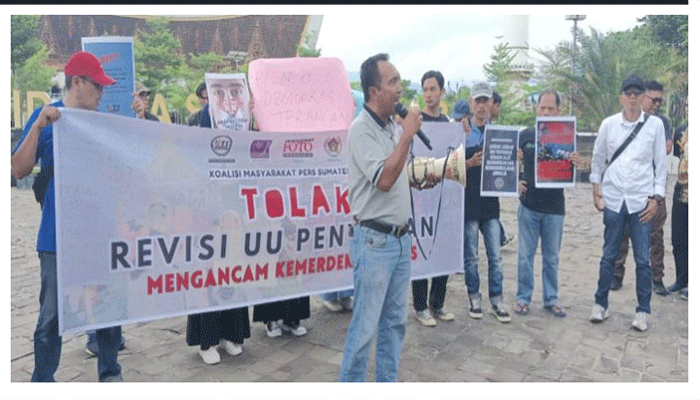“Rencana revisi UU Penyiaran khususnya melarang investigative Pers maupun investigasi oleh konten kreator harus dibatalkan dan Pers Sumbar tegas menolak rencana busuk itu,” ujar Ucok.