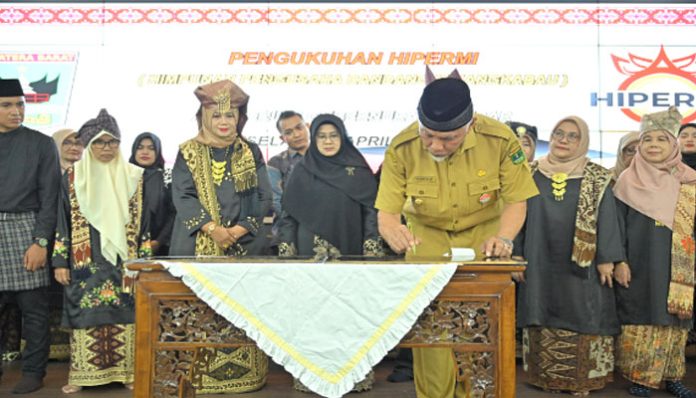Kota Padang – Gubernur Sumatera Barat Mahyeldi Ansharullah mengukuhkan Pengurus Himpunan Pengusaha Rendang Minangkabau (Hipermi) periode 2024-2027 tingkat provinsi dan kabupaten/kota, serta pengurus Koperasi Hipermi di Auditorium Istana Gubernuran, Selasa (23/4/2024).
