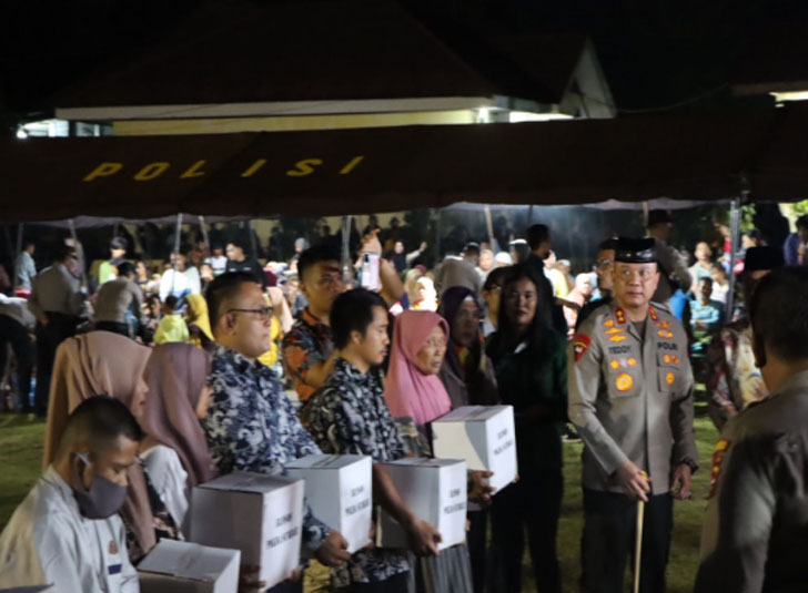 Bantuan ini diserahkan Kapolda Irjen Pol Teddy Minahasa sebanyak 2.750 paket, usai pelaksanaan doa bersama lintas agama, Selasa (6/9) di halaman Mapolres Kepulauan Mentawai.