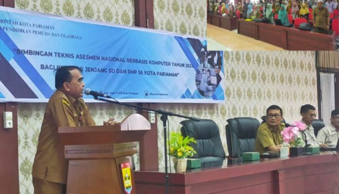 PADANGTIME.COM | Dinas Pendidikan, Pemuda dan Olah Raga Kota Pariaman melaksanakan kegiatan Bimbingan Teknis pelaksanaan Asessmen Nasional tahun 2024 di aula PUPR Kota Pariaman, Selasa ( 13/8/24). Kegiatan ini dikuti oleh seluruh proktor Sekolah Dasar ( SD ) dan Sekolah Menengah Pertama ( SMP ) Negri dan Swasta se Kota Pariaman. Kegiatan di buka oleh Kepala Dinas Pendidikan, Pemuda dan Olah Raga, Kanderi.