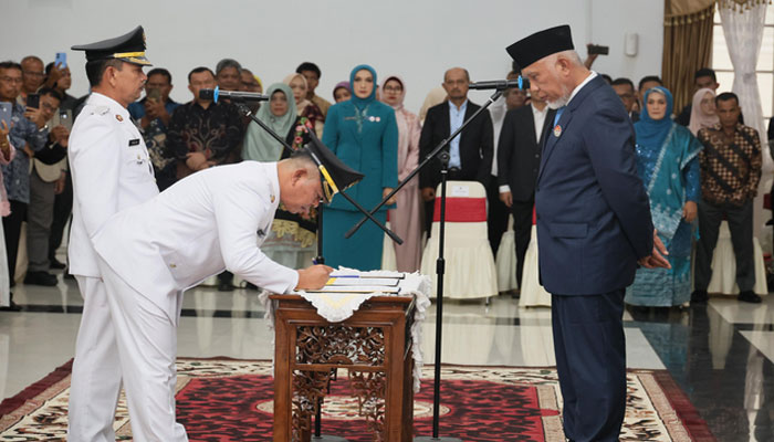 padangtime.com – Gubernur Sumatera Barat (Sumbar), Mahyeldi Ansharullah resmi melantik Welly Suhery dan Parulian sebagai Bupati dan Wakil Bupati Pasaman periode 2025-2030 di Auditorium Gubernuran, Jumat (30/5/2025).