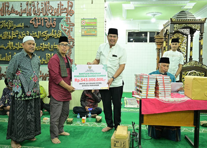 Baznas Sumbar juga turut menyalurkan bantuan pendidikan kepada 543 siswa di Kota Pariaman dengan total nilai sebesar Rp543 juta.