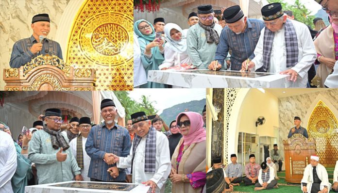 padangtime.com | Gubernur Sumatera Barat, Mahyeldi Ansharullah, meresmikan Masjid Az Zaimah di Nagari Sulit Air, Kabupaten Solok, pada Minggu (15/12/2024). Masjid ini menjadi simbol sinergi antara warga kampung halaman (ranah) dan para perantau yang telah sukses di luar daerah.
