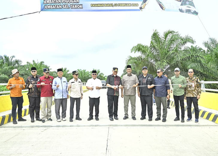 padangtime.com – Gubernur Sumatera Barat (Sumbar), Mahyeldi Ansharullah meresmikan pemakaian tiga jembatan strategis di Kabupaten Pasaman Barat, Jumat (13/2/2026). Ketiga jembatan tersebut yakni Jembatan Patibubur, Jembatan Pigogah, dan Jembatan Sungai Tarok yang dibangun untuk memperkuat konektivitas menuju Pelabuhan Teluk Tapang.