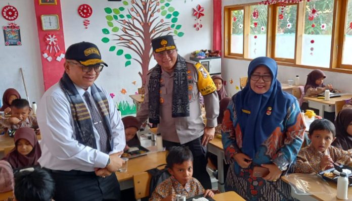 Selain memberikan arahan, Andree Algamar juga menyempatkan diri untuk mendampingi para siswa saat mereka menikmati sajian bergizi.