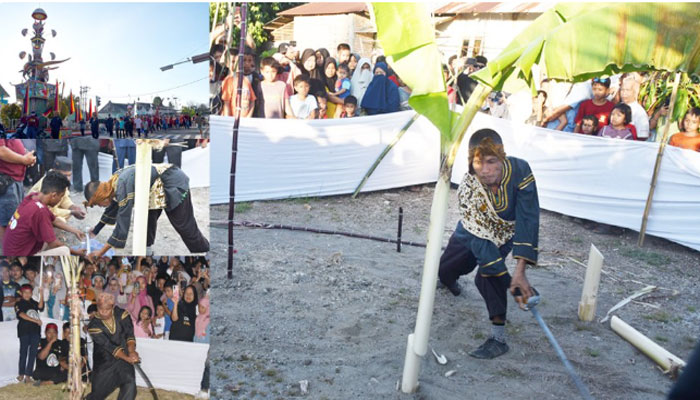 padangtime.com – Dihari kelima bulan Muharram 1447 H/ 01 Juli 2025 M kegiatan kedua dalam acara pembuatan tabuik pada event Pesona Budaya Hoyak Tabuik Piaman 2025 dilakukan dengan prosesi Manabang Batang Pisang atau Maambiak Batang Pisang.