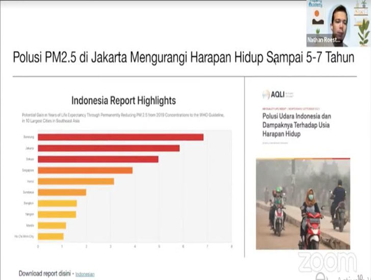 “Menurut data studi yang dilakukan oleh Air Quality Life Index bekerjasama dengan University of Chicago, PM2.5 dapat menurunkan angka harapan hidup. Di daerah tertentu seperti Jabodetabek, pengurangan angka harapan hidup ini bahkan bisa mencapai 5-7 tahun,” jelas Nathan Roestandy, CEO and Co-Founder Nafas Indonesia.