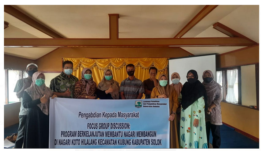 PadangTIME.com – Tim pengabdi dari Lembaga Penelitian dan Pengembangan Masyarakat (LPPM) Universitas Andalas , yang diketuai oleh Rita Rahayu PhD, mengadakan kegiatan Focus Group Discussion (FGD) dengan BUMNag Jaya Mandiri di nagari Koto Hilalang Kecamatan Kubung Kabupaten Solok. Dalam FGD ini hadir  Yuli Endra. ST, selaku wali Nagari, Dafli selaku Sekretaris Nagari dan juga pengelola BUMNag. Kegiatan ini bertujuan untuk mengidentifikasi permasalahan yang dihadapi oleh BUMN Ag  inidalamrangkamencarikansolusi agar BUMNag Jaya Mandiri dapat berkembang.