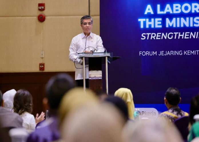 Menaker menekankan bahwa penguatan ketenagakerjaan nasional hanya bisa berjalan melalui kolaborasi pemerintah, dunia usaha, dan tenaga kerja.