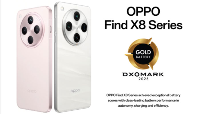 SHENZHEN, CHINA – 17/1/2025 | OPPO Find X8 dan Find X8 Pro keduanya telah menerima Label Emas Baterai DXOMARK 2025, mengakui kinerja baterai mereka yang unggul dalam hal otonomi, pengisian daya, dan efisiensi.