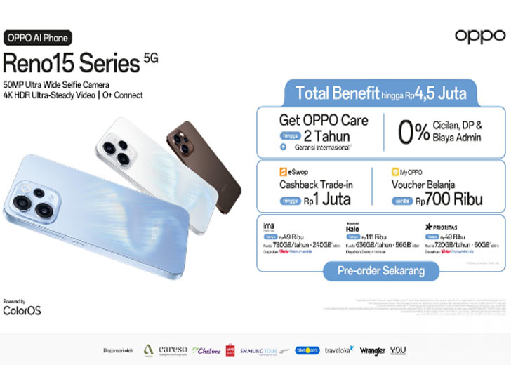 Tersedia juga penawaran khusus dari mitra operator IM3 Platinum, Telkomsel Halo, dan XL Prioritas. Untuk informasi lebih lengkap, kunjungi website resmi OPPO Indonesia pada tautan berikut ini https://www.oppo.com/id/