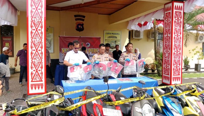 “Personil Reskrim Pasbar berhasil menangkap empat pelaku curanmor dari mengembangkan penyidikan atas beberapa laporan polisi dari masyarakat yang kehilangan sepeda motor. Kita berhasil mengamankan barang bukti sebanyak delapan unit, sementara satu buah sepeda motor yang digunakan pelaku untuk melancarkan saat aksi curanmor tersebut, ” ungkap Kapolres AKBP. Agung Tribawanto S.I.K