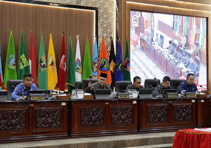 Rapat Paripurna dipimpin Langsung Ketua DPRD Muhidi dan Wakil Ketua Evi Yandri, Nanda Satria dan Iqra Chissa, juga dihadiri Wakil Gubernur Sumatera Barat Vasko Ruseimy, unsur Forkopimda, Sekretaris Dewan Maifrizon, jajaran OPD, pimpinan BUMN/BUMD, serta wartawan media cetak, elektronik dan online.