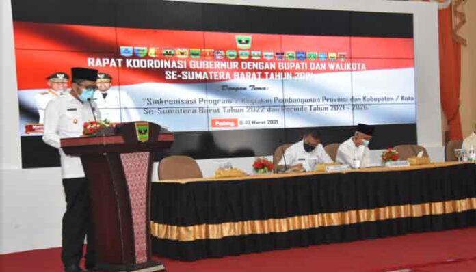 Hal tersebut disampaikan Hendri Septa saat mengikuti Rapat Koordinasi Perencanaan Pembangunan (Rakorenbang) Tahun 2021 bersama Gubernur dan Bupati/Wali kota se- Sumatera Barat, di Auditorium Gubernur, Rabu (10/3/2021).