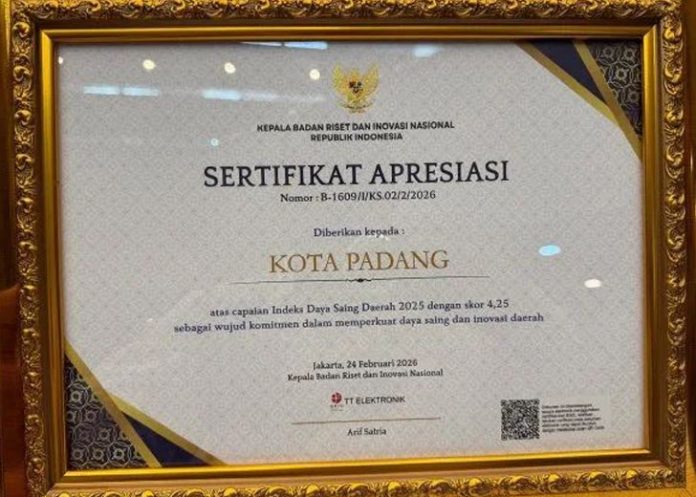 padangtime.com – Pemerintah Kota Padang kembali menorehkan prestasi di bulan suci Ramadan. Kota Padang ditetapkan sebagai daerah dengan nilai Indeks Daya Saing Daerah (IDSD) tertinggi tahun 2025 oleh Badan Riset dan Inovasi Nasional (BRIN).