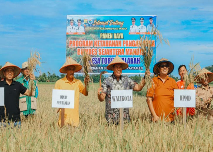padangtime.com – Wali Kota Pariaman, Yota Balad hadiri panen raya padi program ketahanan pangan desa yang dikelola Badan Usaha Milik Desa (BUMDes) Sejahtera Mandiri Desa Toboh Palabah di area persawan Desa Toboh Palabah, Kecamatan Pariaman Selatan, Kota Pariaman, Jumat (17/4/2026). Kegiatan ini menjadi wujud nyata dukungan pemerintah daerah terhadap program ketahanan pangan nasional.