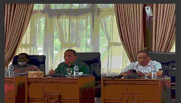 Padang TIME.com – Ketua Komisi I Syawal dan Sekretaris Rafdinal, bersama Asisten I Setdaprov Sumbar Devi Kurnia memimpin rapat pembahasan LJKP di Istana Bung Hatta Bukittinggi, Kamis 10 Maret 2022.