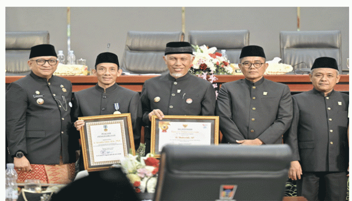 Ketua DPRD Kota Padang, Syafrial Kani mengatakan, penyerahan piagam dan pin emas berlogo pemerintah Kota Padang tersebut diberikan sebagai bentuk penghargaan atas kontribusi mereka terhadap kemajuan dan kesejahteraan Kota Padang. Penyerahan secara langsung diberikan oleh Pj Wali Kota Padang, Andree Algamar.