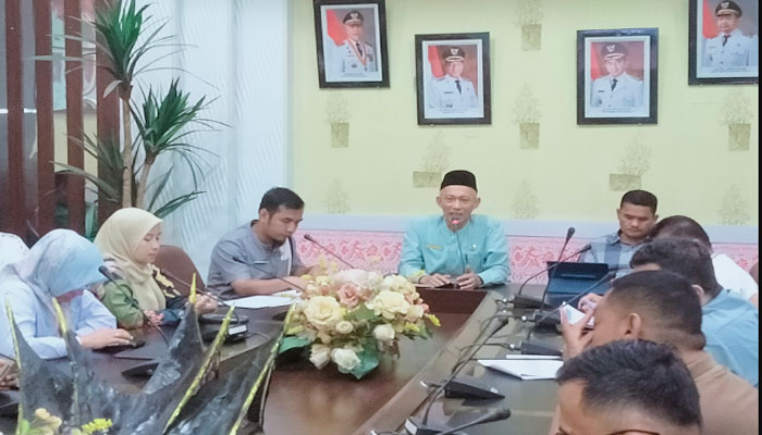 Jumpa pers yang dipimpin Bupati Pesisir Selatan diwakili Sekretaris Daerah, Mawardi Roska itu dihadiri Kadis Kominfo, Wendi, Kadis Perikanan dan Pangan, Firdaus, Kadis Sosial, Pemberdayaan Perempuan dan Perlindungan Anak, Wendra Rovikto, Kepala Pelaksana BPBD, Doni Gusrizal, Plt Kesehatan, Intan, dan lainnya. (pt)
