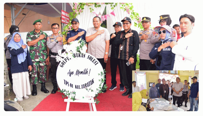 Padang TIME.com – Sekretaris Daerah (Sekda) Kota Pariaman, Yota Balad, bersama Forum Komunikasi Pimpinan Daerah (Forkopimda), KPU, dan Bawaslu, monitoring hari pencoblosan Pemilihan Umum (Pemilu) Presiden dan Wakil Presiden dan Pemilihan Legislatif (Pileg) tahun 2024, di beberapa TPS yang ada di Kota Pariaman, Rabu (14/2/2024).