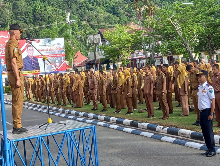 PADANGTIME.COM | Sekretaris Daerah Kabupaten (Sekkab) Pesisir Selatan (Pessel), Mawardi Roska, SIP, memberikan arahan penting dalam apel gabungan yang digelar di halaman Kantor Bupati Pessel Senin (4/11). Pada kesempatan itu, Mawardi menyampaikan beberapa program dan kebijakan penting yang diharapkan dapat mendorong kesejahteraan masyarakat, khususnya di bidang pendidikan dan penyediaan gizi.
