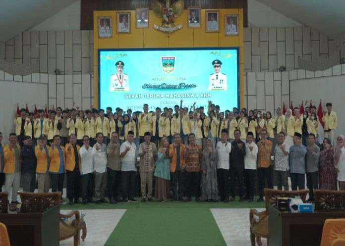 Serah terima mahasiswa KKN dilakukan oleh pihak UNP kepada Pemerintah Kabupaten Solok Selatan. Dari UNP hadir Wakil Rektor Bidang Akademik, Kemahasiswaan, dan Alumni Prof. Dr. Refnaldi S.Pd., M.Litt., didampingi Kepala LPPM Prof. Dr. Anton Komaini, S.Si., M.Pd., serta Kepala Pusat Pengabdian kepada Masyarakat dan KKN LPPM UNP Dr. Yasdinul Huda, S.Pd., MT.
