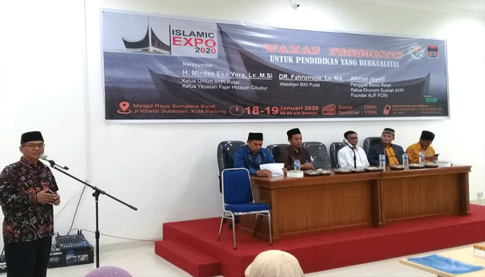Sehingga dengan itu, masyarakat Kota Padang khususnya diharapkan dapat terbantu dalam pengembangan pendidikan sekolah melalui program AYPI. Untuk itu atas nama Pemerintah Kota Padang, kita memberikan apresiasi yang luar biasa pada AYPI, sebagaimana bertepatan pada momen pergantian tahun baru Islam 1 Muharram 1441 Hijriyah lalu telah melaunching secara resmi pengelolaan wakaf untuk pembangunan umat.