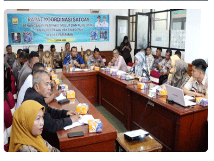 PadangTIME.com – Pemerintah Kota Pariaman melalui Dinas Pertanian, Pangan dan Perikanan Kota Pariaman menggelar Rapat Koordinasi Satuan Tugas Penanganan Penyakit Mulut dan Kaki (PMK) / Foot and Mouth Disease dan Percepatan Vaksinasi PMK terhadap hewan ternak di Kota Pariaman Tahun 2022, Kamis (25/8/2022) di ruang rapat wakil walikota, Balaikota Pariaman.