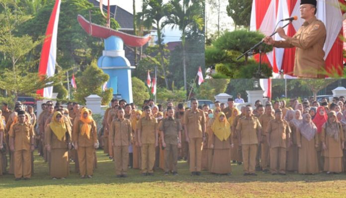 PADANGTIME.COM | Pemerintah Kota Pariaman kembali menggelar apel gabungan seluruh Aparatul Sipil Negara (ASN). Apel gabungan dipimpin langsung Penjabat (Pj) Wali Kota Pariaman Roberia di Halaman Balaikota Pariaman, Senin (12/8).