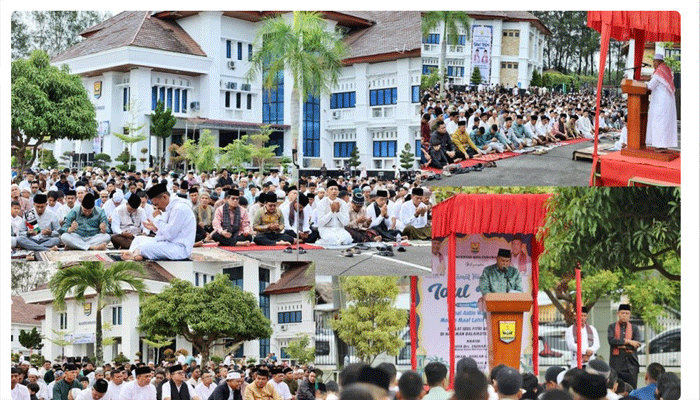 Wali Kota Pariaman Yota Balad dalam sambutannya mengucapkan terima kasih kepada seluruh masyarakat yang telah meramaikan Halaman Balaikota Pariaman dan melaksanakan Salat Idul Fitri dengan Khidmat.