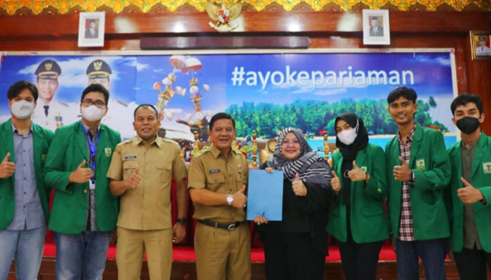 “Selamat datang juga kita ucapkan kepada para mahasiswa (i) yang akan melakukan pengabdian di beberapa desa di Kota Pariaman.