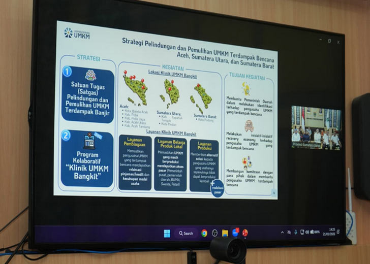 Dukungan tersebut disampaikannya saat mengikuti Rapat Koordinasi Klinik UMKM Bangkit Pascabencana bersama Kementerian UMKM secara daring dari Istana Gubernuran, Rabu (21/1/2026).