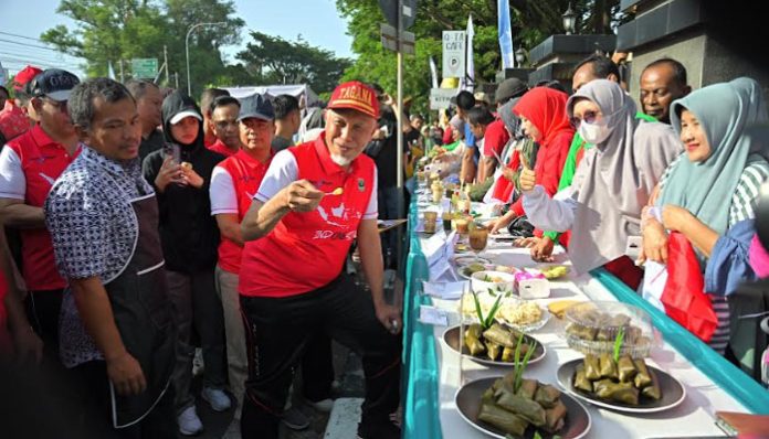 PADANGTIME.COM | Pemerintah Provinsi Sumatera Barat selenggarakan Festival Kuliner Minangkabau dan Senam Bersama di salah satu ruas jalan utama di Kota Padang, Minggu (28/7/2024).