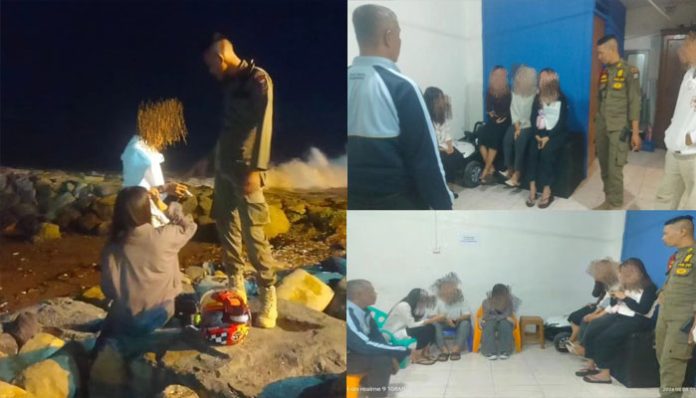 PADANGTIME.COM | Antisipasi perilaku maksiat Pol PP Padang amankan enam perempuan dan satu orang laki-laki di kawasan Batu Grib Pantai Padang pada Kamis Dini Hari (8/8/2024).