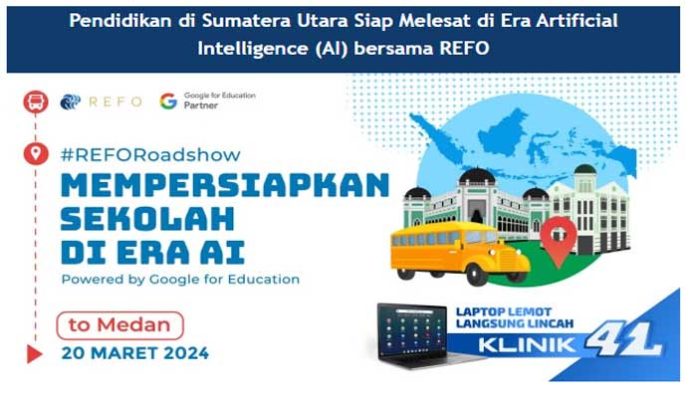 Setelah sukses dengan program REFO Roadshow “Transformasi Digital On-the-Go” pada tahun 2023, tahun ini REFO kembali menggelar roadshow dengan tema “Mempersiapkan Sekolah di Era AI”, yang akan diselenggarakan di Medan, Jakarta, Surabaya, dan Makassar.