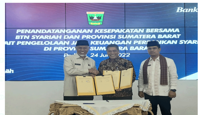 PadangTIME.com – Memperkuat komitmen untuk menjadikan Sumatera Barat (Sumbar) sebagai pusat industri halal di Indonesia dan dunia, Pemerintah Provinsi Sumbar melakukan penandatanganan kesepakatan bersama dengan PT. Bank Tabungan Negara (Persero) Tbk, dan PT. Sucofindo, di Auditorium Gubernuran Sumbar, Jumat (24/6/2022).