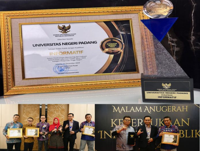 padangtime.com | Universitas Negeri Padang (UNP) kembali mencatatkan prestasi gemilang di penghujung tahun 2024. Setelah sebelumnya berhasil meraih enam penghargaan di bidang kerja sama dan humas dari Kementerian Pendidikan, Kebudayaan, Riset, dan Teknologi (Kemendikbudristek), kini UNP dinobatkan sebagai Perguruan Tinggi (PT) Informatif untuk kelima kalinya oleh Komisi Informasi Pusat (KIP).