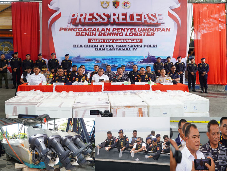 Batam – PADANGTIME.COM | Tim Gabungan Bareskrim Polri bersama Kanwilsus DJBC Kepri, dan Lantamal IV Batam berhasil menggagalkan upaya penyelundupan benih bening lobster yang yang terjadi di Perairan Berakit, Kabupaten Bintan, Kepulauan Riau. Hal ini disampaikan oleh Dirtipidter Bareskrim Polri Brigjen Pol Nunung Syaifuddin, S.I.K., M.M., didampingi Kakanwil DJBC khusus Kepri Adhang Noegroho Adhi, pada saat konferensi Pers di Kantor DJBC Khusus Kepri Kabupaten Karimun. Kamis (17/10/2024).