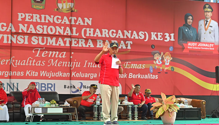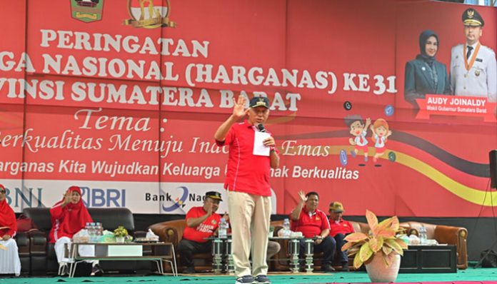 “Momentum Peringatan Harganas ini menjadi penting untuk memperhatikan penguatan ketahanan keluarga, dalam pencapaian program pembangunan keluarga, kependudukan, kelurga berencana, dan percepatan penurunan stunting,” kata Mahyeldi dalam sambutannya.