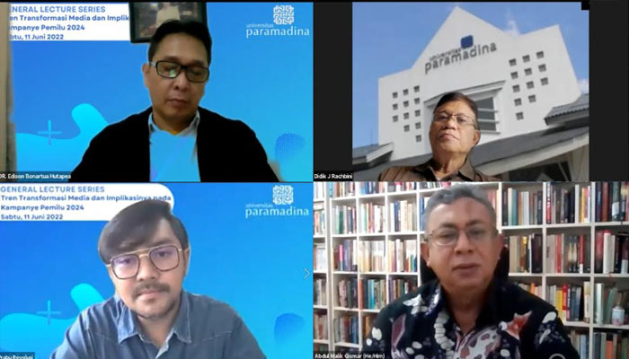 Demikian dinyatakan Didik saat memberi pidato kunci (keynote speech) dalam Paramadina Graduate School of Communication (PGSC) General Lecture Series bertajuk “Tren Transformasi Media dan Implikasinya pada Kampanye Pmeilu 2024” yang diselenggarakan secara daring pada 11 Juni 2022.