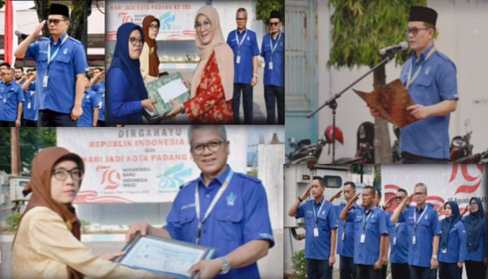 PADANGTIME.COM | Plh. Direktur Utama Perumda Air Minum Kota Padang, Andri Satria, memimpin upacara bendera di lingkungan perusahaan pada hari Senin, 2 September 2024.