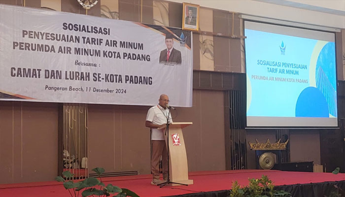 Padang – Perusahaan Daerah Air Minum (Perumda AM) Kota Padang bakal melakukan penyesuaian tarif untuk 2025. Sebagai bentuk transparansi terhadap para pelanggannya, Perumda AM Kota Padang melakukan sosialisasi terkait penyesuaian tarif tersebut kepada seluruh camat dan lurah se-Kota Padang di salah satu hotel, Rabu (11/12/2024).